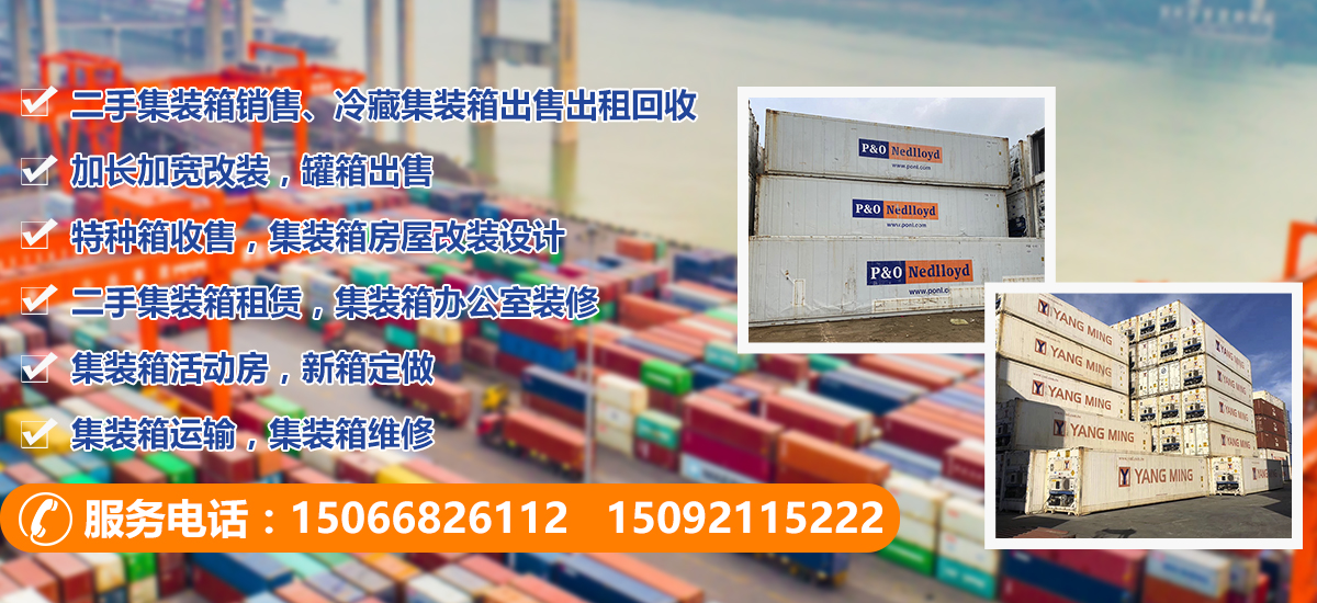主營(yíng):二手集裝箱銷(xiāo)售、冷藏集裝箱出售出租回收、加長(zhǎng)加寬改裝,罐箱出售,特種箱收售,集裝箱房屋改裝設(shè)計(jì),二手集裝箱租賃,集裝箱辦公室裝修,集裝箱活動(dòng)...